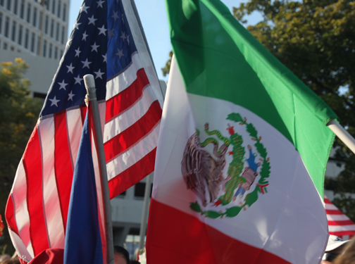 | La bandera cubana fue solidariamente acompañada por las de otros pueblos hermanos que se sumaron a la marcha. |