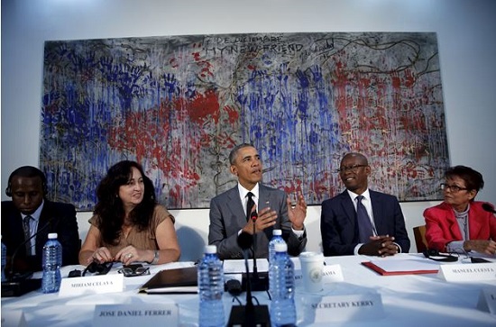Raúl Castro, de un lado, y Ramos Latour, del otro, en el que los