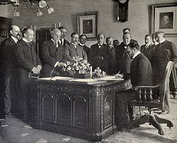 A finales del año 1898 se reunieron en la ciudad de París las delegaciones de los gobiernos de Estados Unidos y España para negociar las condiciones de paz entre ambos países. Es muy frecuente en Cuba resaltar el hecho de que Cuba no estuvo representada en esa reunión. Sobre esto deseo plantear lo siguiente:En primer lugar diré que soy del criterio que debió existir una representación cubana; pero también, soy del criterio, que debió existir una representación de cada uno del resto de los países cuya suerte se estaba definiendo (Puerto Rico, Filipinas, etc.); aunque reconozco la existencia de motivos que engendrarían objeciones de Estados Unidos y España en aceptar delegaciones de estos últimos países, y la particular situación cubana (en cuanto a los antecedentes de las luchas separatistas) con relación a la llevada por esos países.